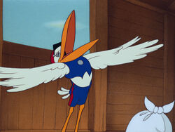 Dumbo is a baby elephant in the classic Disney movie. Stork one of the storks who were delivering babies to the circus animals. After settling down he plopped.